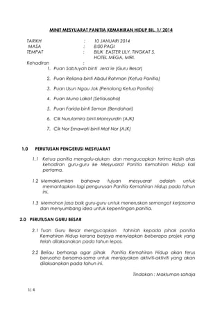 Minit Mesyuarat Pengurusan Sekolah Pdf